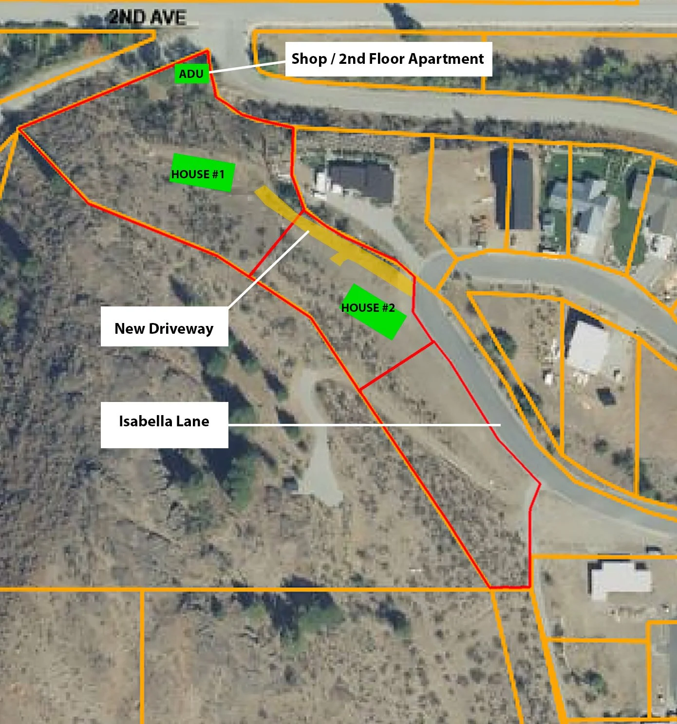 Primary access to Parcel No. 1 is by an engineered, newly-built private driveway off Isabella Lane. Part of the project included installation of water, power, and fiber conduit to Isabella Lane. Sewer is on-site and connected to town infrastructure.